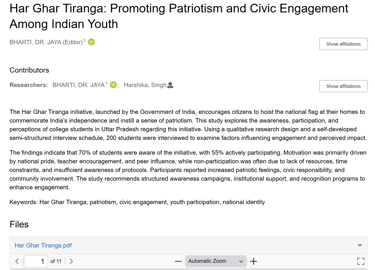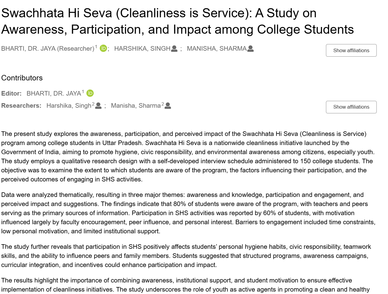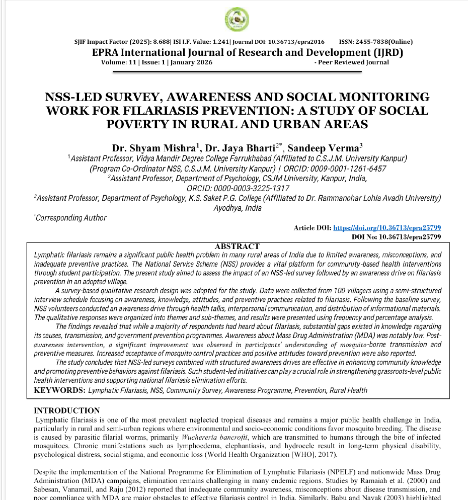 राष्ट्रीय सेवा योजना युवा स्वयंसेवकों में मानवीय संवेदना, श्रम की इच्छा, सहभागिता, सेवा भाव, स्वावलम्बन, स्वदेश प्रेम, सामाजिक समरसता एवं कर्तव्य बोध की भावना जागृत करने का एक सशक्त माध्यम है। आज आवश्यकता है कि युवा संवेदनशील बने, क्योंकि संवेदनशील होना एक स्वस्थ्य व्यक्तित्व का लक्षण है। राष्ट्रीय सेवा योजना का ध्येय वाक्य यह बताता है कि हम दूसरे व्यक्ति के दृष्टिकोण की सराहना करने वाले बनें तथा दूसरों को सम्मान व श्रेय देने वाले बनें।