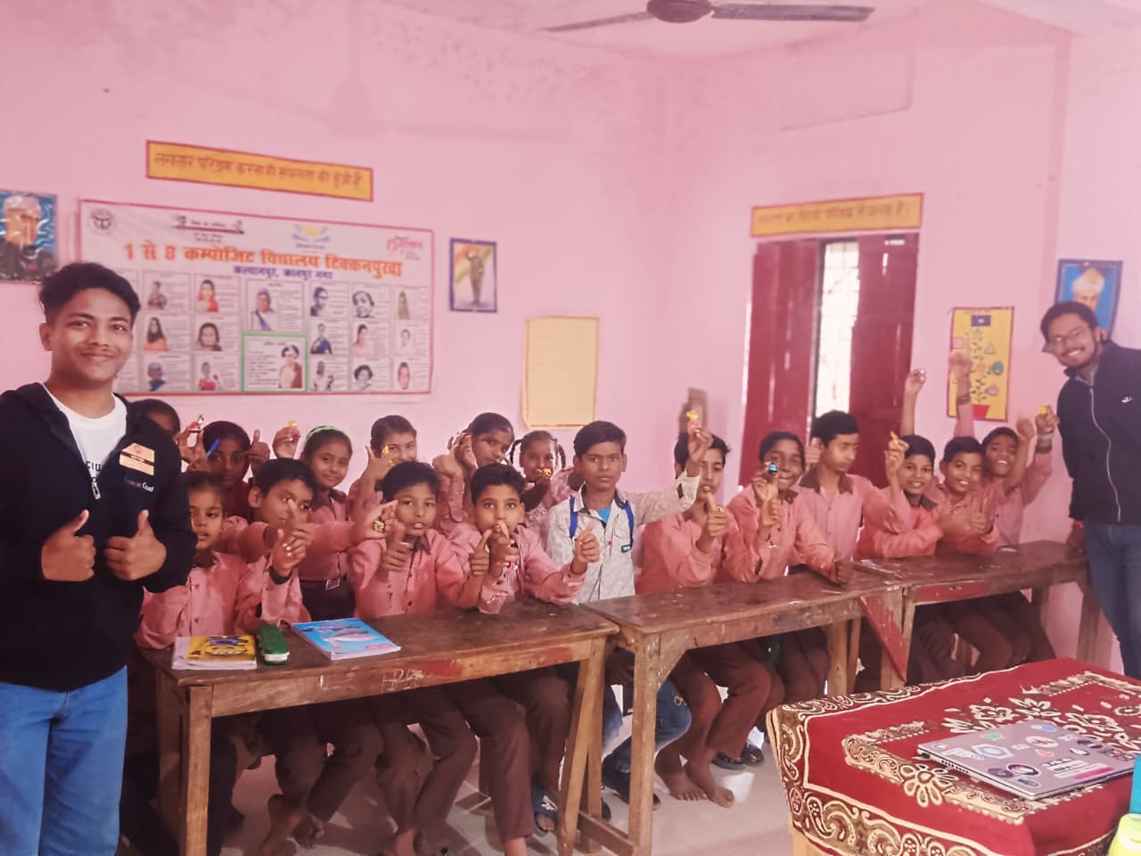आज बाल दिवस के अवसर पर एनएसएस टीम द्वारा टीकनपुरवा कॉम्पोजिट स्कूल में एक विशेष संवादात्मक सत्र आयोजित किया गया। कार्यक्रम की शुरुआत विद्यार्थियों से बातचीत के साथ हुई, जहाँ उन्होंने अपने भविष्य के सपनों और करियर लक्ष्यों को उत्साहपूर्वक साझा किया।