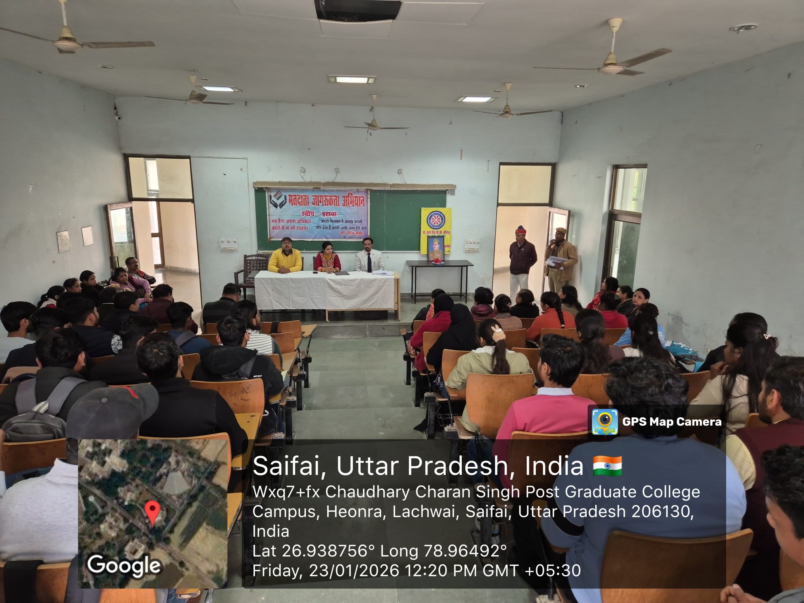 चौ. चरण सिंह पी जी कॉलेज इटावा में मतदाता जागरूकता एवं सुभाष चंद्र बोस जयंती कार्यक्रम का आयोजन