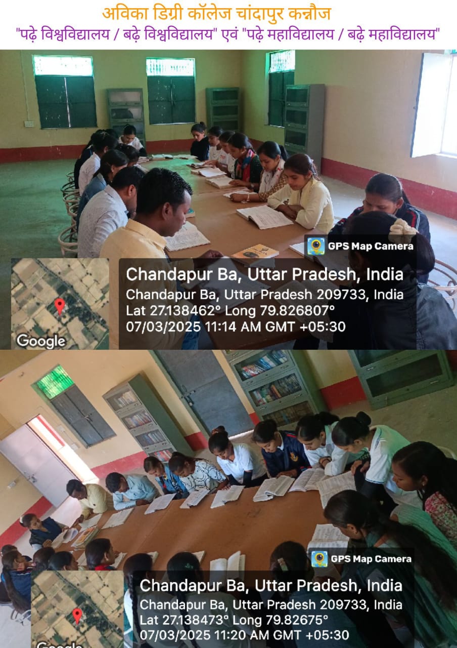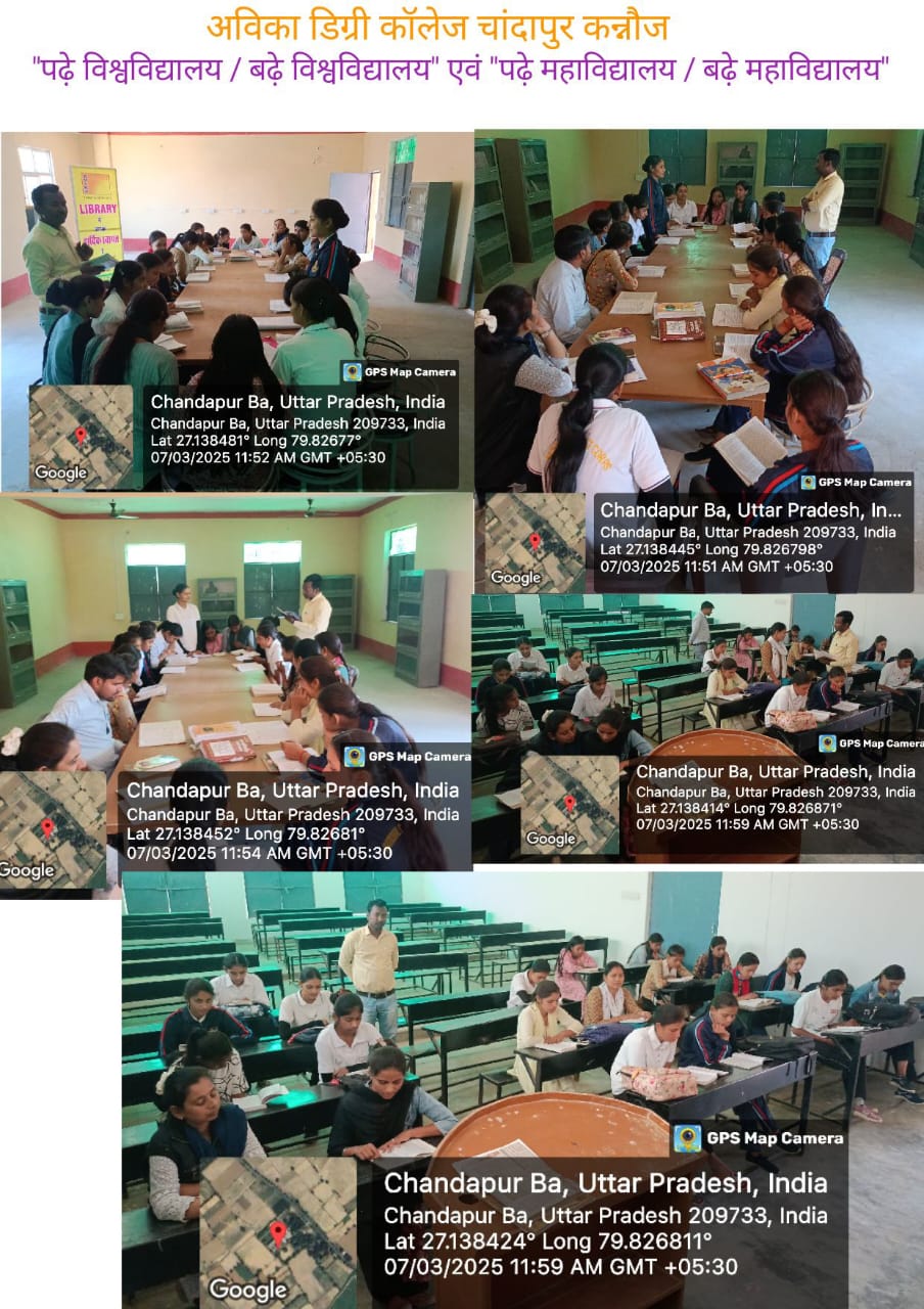 जलालाबाद। गुगरापुर क्षेत्र के चांदापुर इ स्थित अविका डिग्री कॉलेज में पढ़े महाविद्यालय बढ़े महाविद्यालय, दहेज मुक्त भारत और नशा मुक्त भारत अभियान कार्यक्रम का आयोजन किया गया। कार्यक्रम में छात्र- छात्राओं ने प्रतिभाग किया। जिसमें सर्वप्रथम पढ़े महाविद्यालय/ बढ़े महाविद्यालय कार्यक्रम के तहत छात्र- छात्राओं ने पुस्तकों का वाचन किया। शिक्षकों ने पुस्तक समीक्षा की। विद्यार्थियों द्वारा पूछे गए प्रश्नों का समाधान किया गया। प्राचार्य डॉ हरिओम ने ने चिकित्सा और आहार विषय पर दिए गए सिद्धांतों की व्याख्याता की। डॉ पल्लवी यादव ने पुस्तकों का महत्व प्रतिपादित करते हुए पुस्तकालय के उपयोग पर ध्यान देने को कहा। इसके उपरांत दहेज मुक्त भारत के शपथ ग्रहण कार्यक्रम को आयोजित हुआ।। इसी क्रम में नशा मुक्त भारत की शपथ भी दिलाई गई। इस मौके पर डॉ सुरेंद्र कुमार, मोरपाल सिंह, दिलदार सिंह, सचिन यादव, कौशकी, मोहिनी शर्मा सहित छात्रा स्वाती, सपना, सौम्या शर्मा, रागिनी यादव, शालू, काजल भदौरिया आदि रहे।