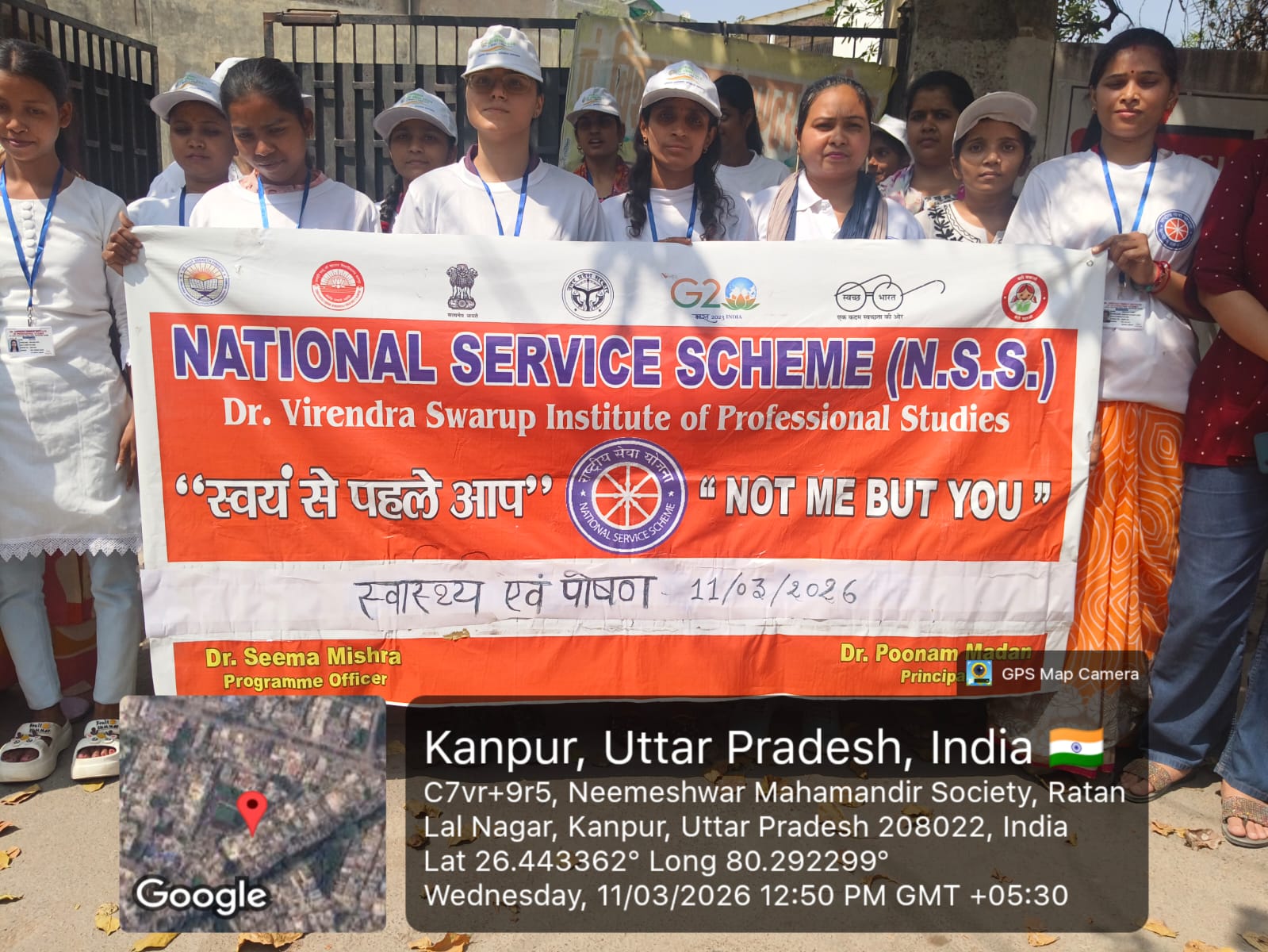 आज दिनांक 11 मार्च 2026 को डॉ वीरेंद्र स्वरूप इंस्टिट्यूट ऑफ़ प्रोफेशनल स्टडीज की NSS इकाई द्वारा आयोजित विशेष शिविर के छठे दिन खाद्य सुरक्षा से संबंधित जागरूकता कार्यक्रम का आयोजन किया गया। इस अवसर पर फूड सेफ्टी विभाग से FSO श्री अनिल यादव तथा डॉ. अजय मौर्य मुख्य अतिथि के रूप में उपस्थित रहे।