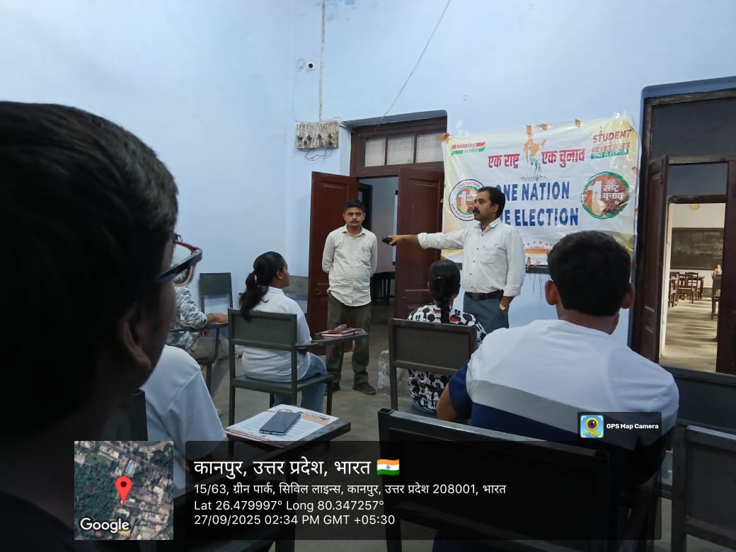 डीएवी कॉलेज, कानपुर की राष्ट्रीय सेवा योजना (एनएसएस) इकाई द्वारा "वन नेशन, वन इलेक्शन" विषय पर एक जागरूकता गोष्ठी का आयोजन किया गया। इस विचारगोष्ठी में भारत में एक साथ चुनाव कराने की संभावनाओं, लाभों एवं चुनौतियों पर विस्तृत विचार-विमर्श किया गया।