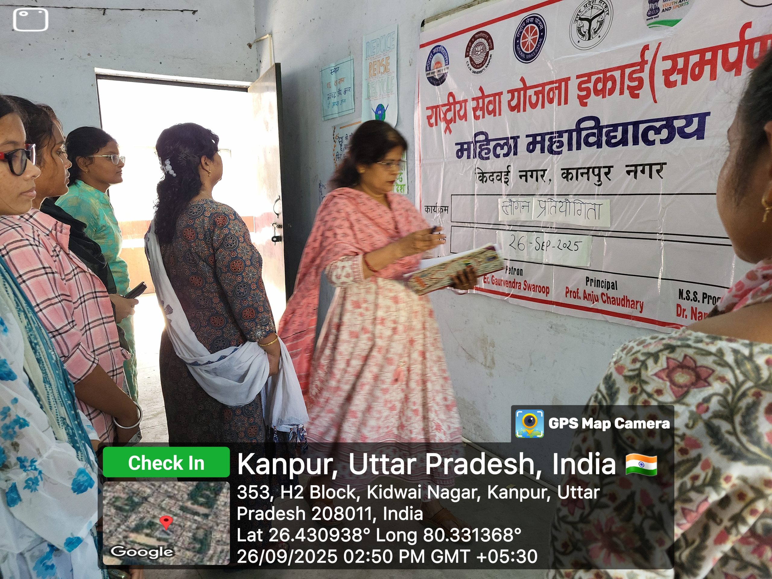 आज दिनांक 26 सितंबर 2025 को महिला महाविद्यालय किदवई नगर कानपुर की राष्ट्रीय सेवा योजना इकाई “समर्पण” द्वारा स्वयंसेविकाओं के लिए स्लोगन प्रतियोगिता का आयोजन किया गया। यह प्रतियोगिता स्वच्छता, पर्यावरण संरक्षण और समाज सेवा जैसे विषयों पर आधारित थी और इसका उद्देश्य विद्यार्थियों में रचनात्मकता के साथ-साथ जागरूकता फैलाना था।