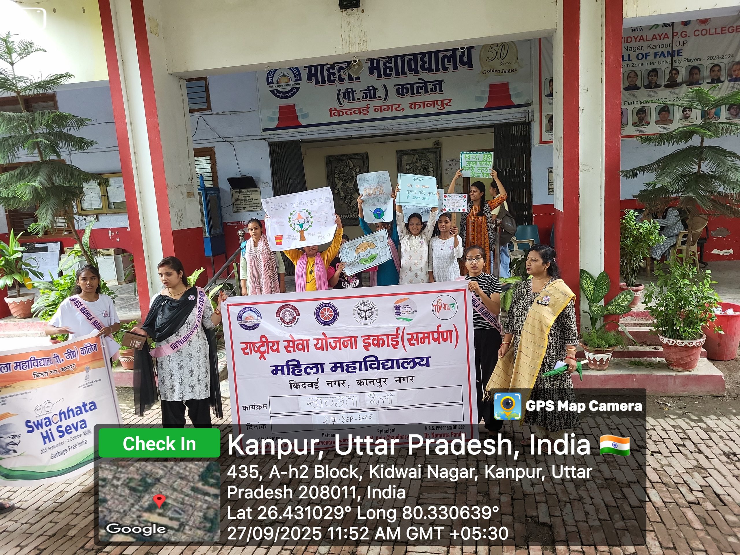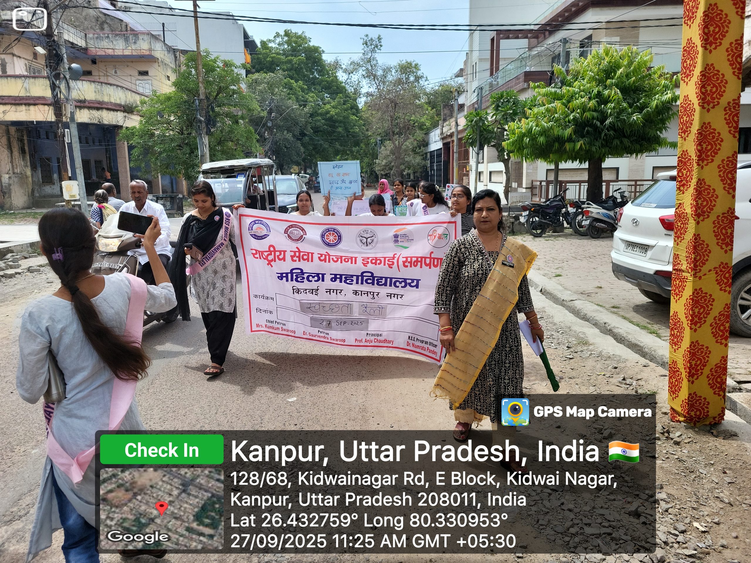 आज दिनांक 27 सितंबर 2025 को महिला महाविद्यालय किदवई नगर कानपुर की राष्ट्रीय सेवा योजना इकाई “समर्पण” द्वारा शासन के निर्देशानुसार स्वच्छ उत्सव – स्वच्छता ही सेवा है (SHS) अभियान के अंतर्गत स्वच्छता रैली का आयोजन किया गया।