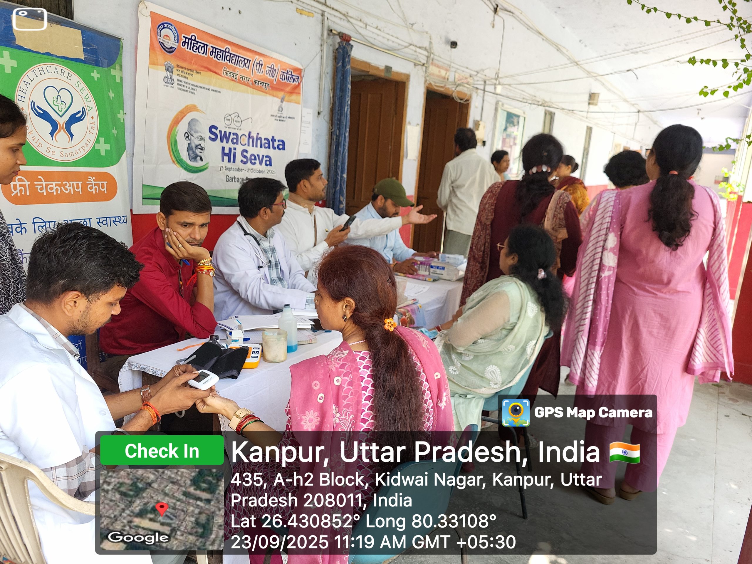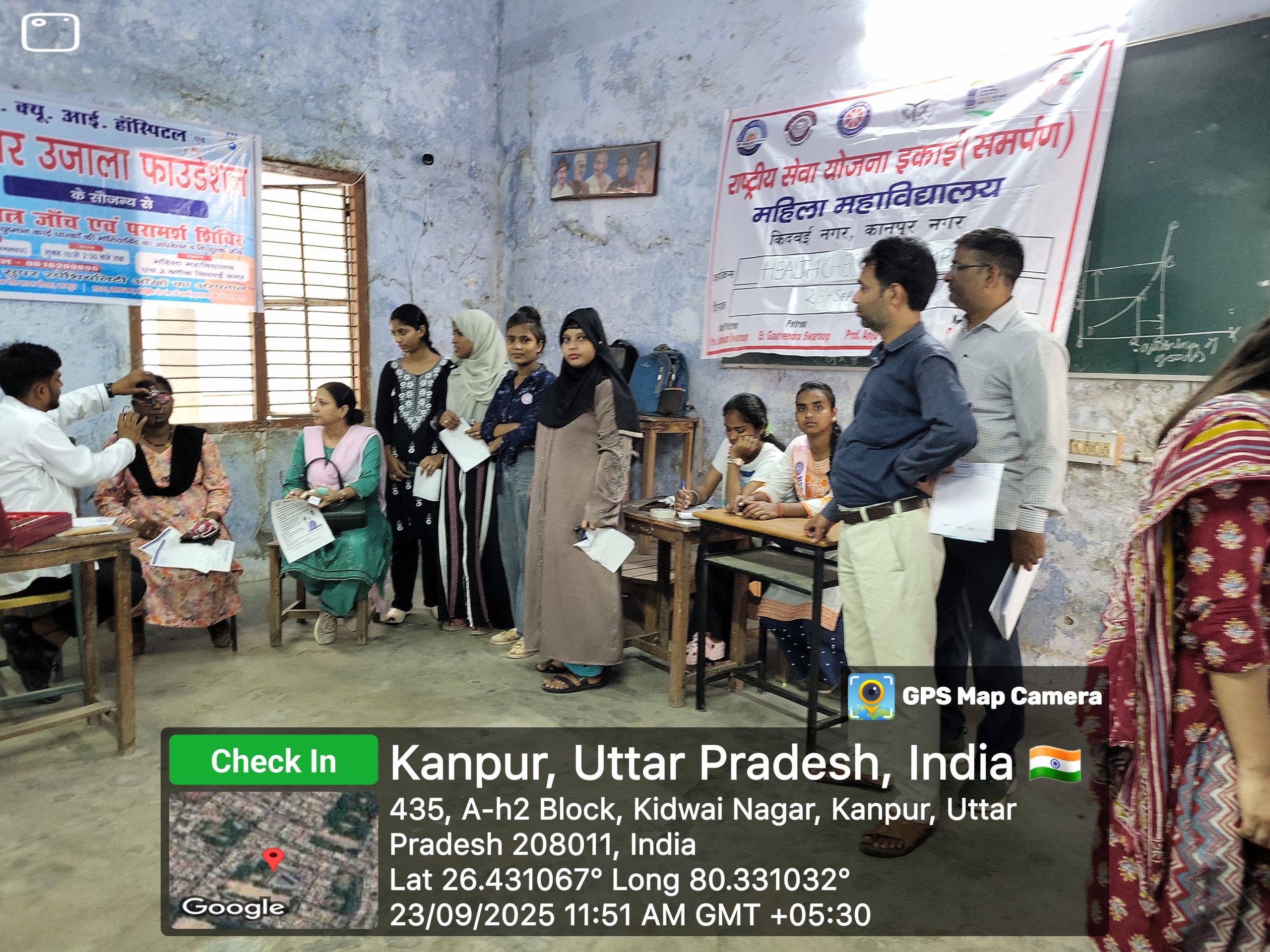 आज दिनांक 23 सितंबर 2025 को महिला महाविद्यालय किदवई नगर कानपुर की राष्ट्रीय सेवा योजना इकाई “समर्पण” के तत्वावधान में एक विशेष स्वास्थ्य जांच शिविर का आयोजन किया गया। यह शिविर विद्यार्थियों, शिक्षकों और स्थानीय नागरिकों की स्वास्थ्य जांच और प्राथमिक उपचार हेतु आयोजित किया गया।