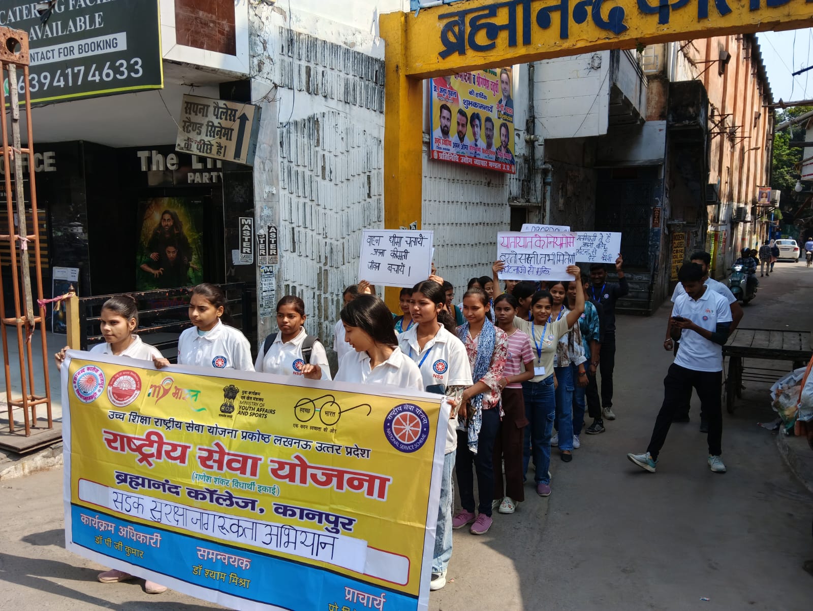 यह कार्यक्रम ब्रह्मानंद कॉलेज के राष्ट्रीय सेवा योजना इकाई के छात्रों में आयोजित की। इस रैली का मुख्य उद्देश्य छात्रों और आम जनता में सड़क सुरक्षा के प्रति जागरूकता फैलाना था । ताकि लोग यातायात नियमों का पालन करें और दुर्घटना से बच सके। सुबह 10:30 बजे कॉलेज परिसर में रैली की शुरुआत एनएसएस कार्यक्रम अधिकारी डॉ . पी जी यादव के नेतृत्व में हुई। स्वयंसेवक हाथों में नारेदार तख्तियां और बैनर लिए हुए लोगों को जागरूकता कर रहे हैं सड़क दुर्घटनाओं का मुख्य कारण लापरवाही और गलत ड्राइविंग होती है। सड़क सुरक्षा सिद्धांत का उद्देश्य सड़क पर चलने वाले सभी लोगों – बालक यात्री और पैदल यात्री की सुरक्षा सुनिश्चित करना है। और हमने उन्हें बताया कि सड़क पर चलते समय यातायात नियमों का पालन करना कितना आवश्यक है लोगों को हेलमेट पहनने सीट बेल्ट लगाने तेज गति से वहान न चलाने और मोबाइल फोन का उपयोग न करने की सलाह दी गई ।