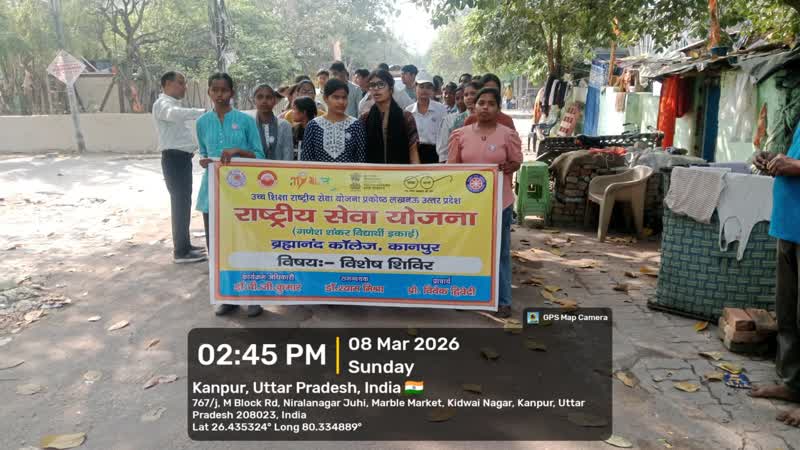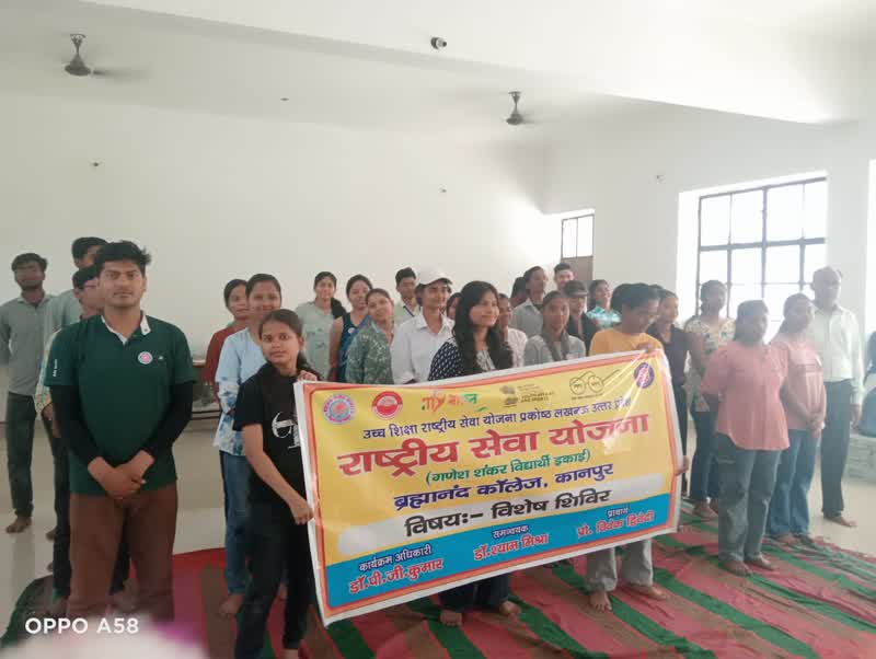 ब्रह्मानंद कॉलेज, कानपुर की राष्ट्रीय सेवा योजना (गणेश शंकर विद्यार्थी इकाई) के विशेष शिविर का शुभारंभ दिनांक 08/03/2026 को महाविद्यालय के उपप्राचार्य प्रो. नवनीत मिश्रा जी, प्रो. सुनील सिंह भदौरिया जी तथा एस. एन. मिश्रा जी द्वारा दीप प्रज्वलन एवं माँ सरस्वती जी की प्रतिमा पर माल्यार्पण कर किया गया।