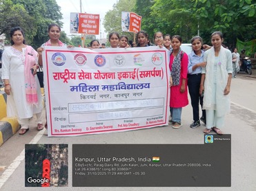 दिनांक 31 अक्टूबर 2025 को महिला महाविद्यालय किदवई नगर, कानपुर की राष्ट्रीय सेवा योजना इकाई “समर्पण” के तत्वावधान में सरदार वल्लभभाई पटेल जी की 150वीं जयंती के उपलक्ष्य में एक “एकता मार्च” (Unity March) का आयोजन किया गया।