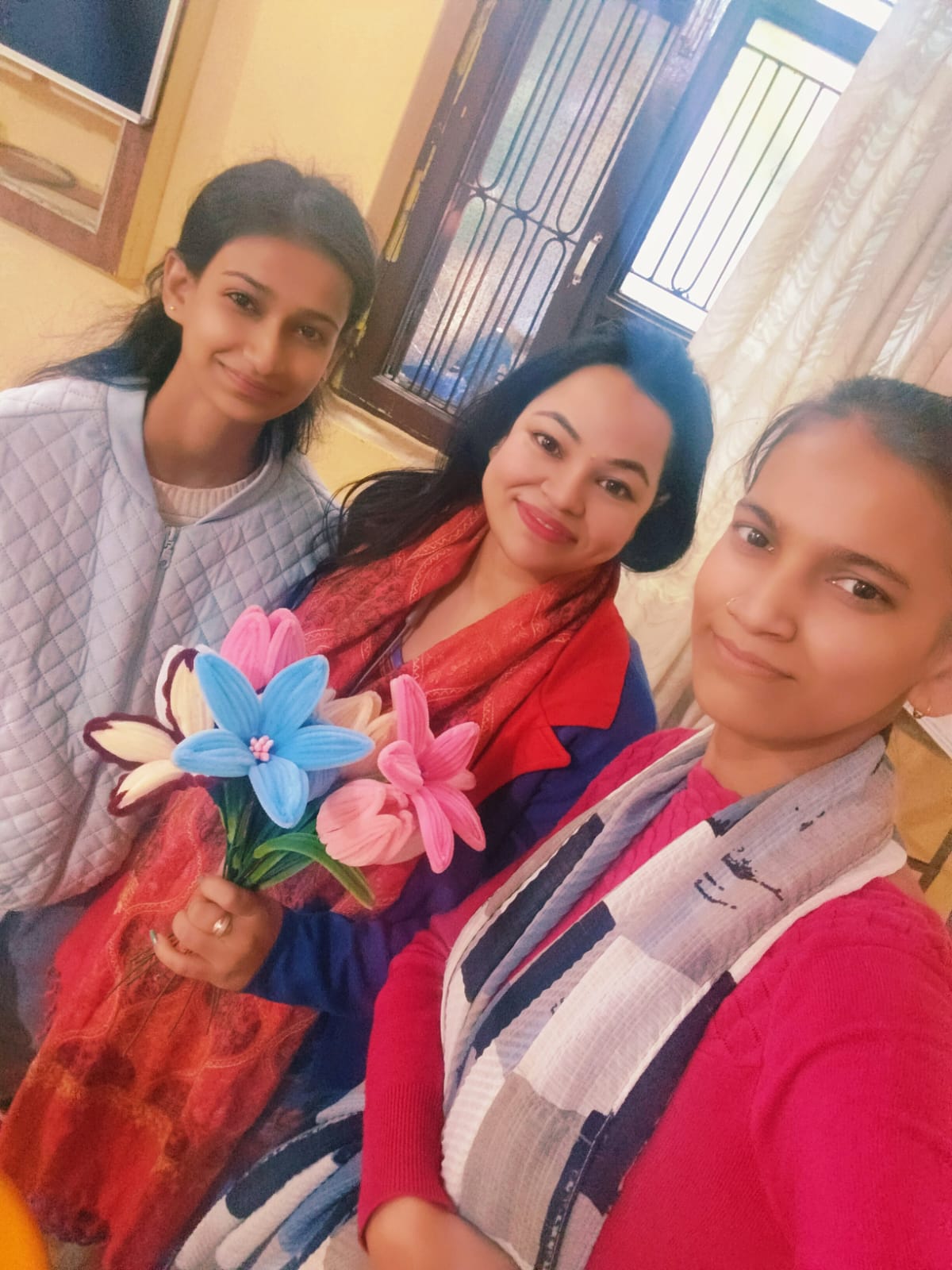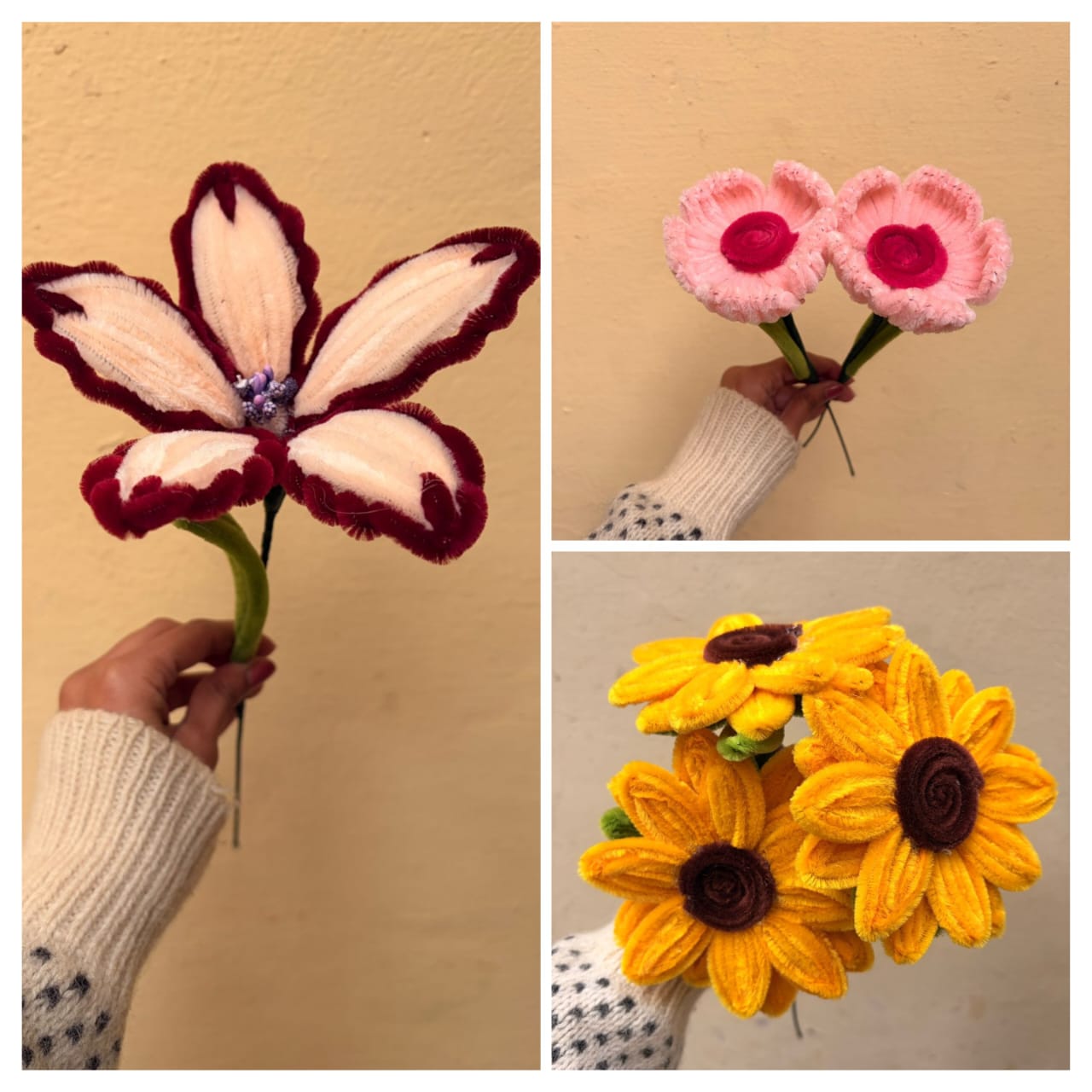 Students practiced decorative flower-making techniques at home using their own materials and later presented their handmade products. Faculty members provided guidance and feedback to improve finishing and presentation.