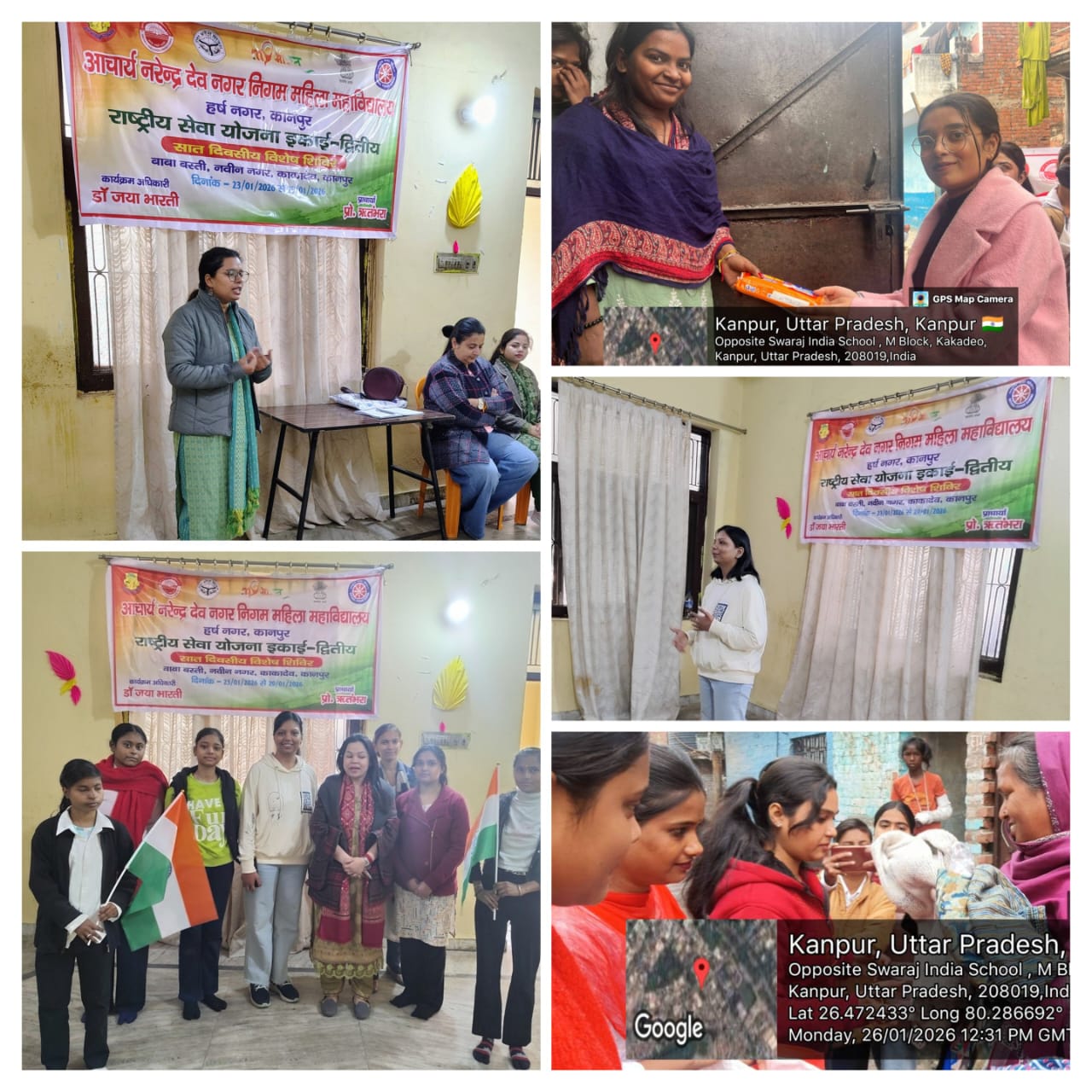 The Seven-Day Special NSS Camp was successfully organized from 23 January to 29 January 2026 at Asha Ki Kiran Foundation, Kakadev / Baba Basti, Kanpur. Each day of the camp began with yoga and Zumba sessions, promoting physical fitness, mental well-being, discipline, and enthusiasm among the volunteers.