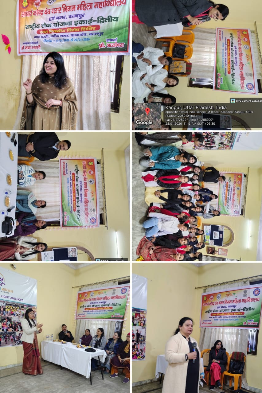 A warm welcome was extended to the Chief Guest, Dr. Shyam Mishra, NSS Coordinator, Chhatrapati Shahu Ji Maharaj University (C.S.J.M.U.), Kanpur. The day also included a field activity on road safety awareness. Additionally, Prof. Hitaishi Singh, Associate Professor, Department of Home Science, A.N.D.N.N.M. Mahavidyalaya, Kanpur Nagar, delivered a lecture highlighting the significance of women’s education, skill development, innovation, financial independence, and entrepreneurship.