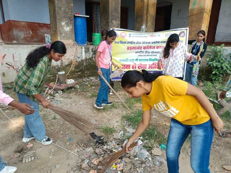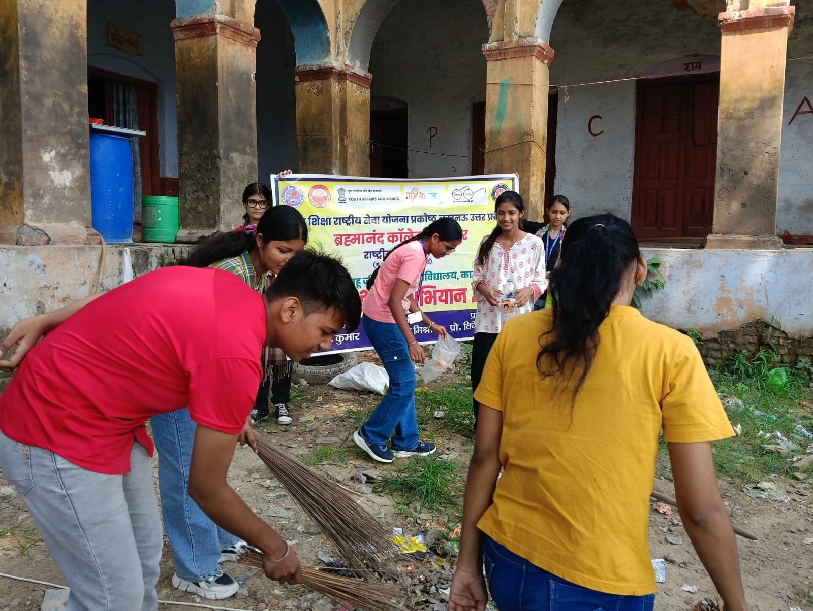 आज दिनांक 23 सितंबर 2025 को ब्रह्मानंद कॉलेज की गणेश शंकर विद्यार्थी इकाई के स्वयंसेवक लल्लू प्रसाद इंटर कॉलेज के मैदान में सफाई का कार्य किया जिसमें सभी स्वयंसेवक ने हिस्सा लिया और मैदान में झाड़ू लगाकर पूरे मैदान की सफाई भी की एवं सारा कूड़ा एक जगह इकट्ठा किया और लालू प्रसाद कॉलेज के विद्यार्थियों को साफ सफाई के लिए प्रेरित कर महाविद्यालय में वापस आ गए यह स्वच्छता से सेवा कार्य कार्यक्रम अधिकारी डॉक्टर पी जी कुमार के नेतृत्व में कार्यक्रम संपन्न हुआ|मैदान में बिक्री भिन्न प्रकार के कूड़े करकट को झाड़ू द्वारा साफ किया गया तथा कचरे की यथा स्थान पर रखा गया तथा अन्य स्वयंसेवक द्वारा खाली बोटल पॉलिथीन वह गुटको के टुकड़ों को भी एकत्रित कर यथा स्थान पर रखा गया इस अभियान से केवल वातावरण ही नहीं शुद्ध होता है बल्कि मन भी शुद्ध होता है| स्वच्छता अभियान के तहत यह कार्यक्रम बहुत ही महत्वपूर्ण रहा क्योंकि सफाई के द्वारा ही मन तथा वातावरण दोनों शुद्ध होता है| धन्यवाद.